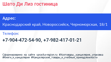 Шато Ди Лиз, гостиница по адресу Краснодарский край, Новороссийск, Черноморская, 18/1 в дальнейшем Организация, размещена в следующих категориях: