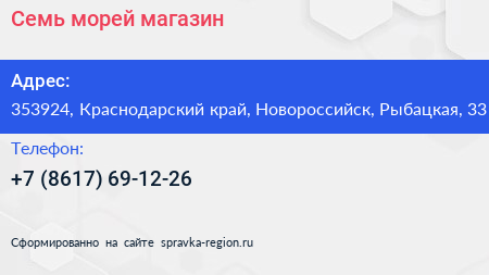 Семь морей, магазин по адресу 353924, Краснодарский край, Новороссийск, Рыбацкая, 33 в дальнейшем Организация, размещена в следующих категориях: