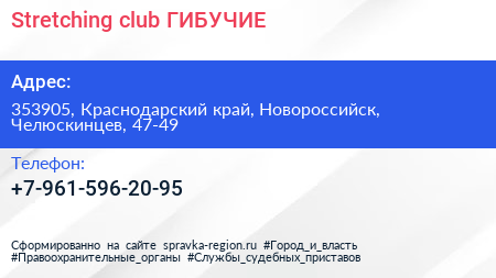 Stretching club #ГИБУЧИЕ по адресу 353905, Краснодарский край, Новороссийск, Челюскинцев, 47-49 в дальнейшем Организация, размещена в следующих категориях: