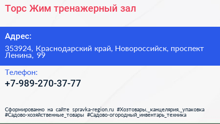 Торс Жим, тренажерный зал по адресу 353924, Краснодарский край, Новороссийск, проспект Ленина, 99 в дальнейшем Организация, размещена в следующих категориях: