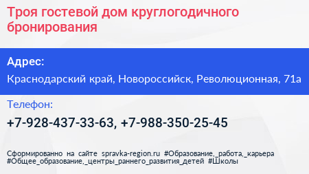 Троя, гостевой дом круглогодичного бронирования по адресу Краснодарский край, Новороссийск, Революционная, 71а в дальнейшем Организация, размещена в следующих категориях: