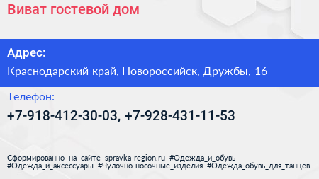 Виват, гостевой дом по адресу Краснодарский край, Новороссийск, Дружбы, 16 в дальнейшем Организация, размещена в следующих категориях: