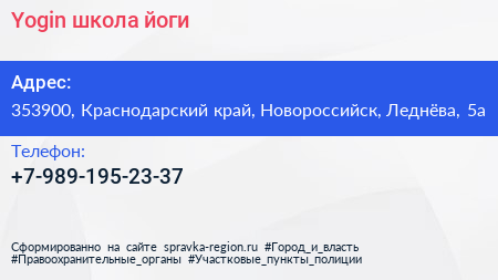 Yogin, школа йоги по адресу 353900, Краснодарский край, Новороссийск, Леднёва, 5а в дальнейшем Организация, размещена в следующих категориях: