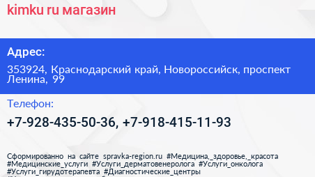 kimku.ru, магазин по адресу 353924, Краснодарский край, Новороссийск, проспект Ленина, 99 в дальнейшем Организация, размещена в следующих категориях: