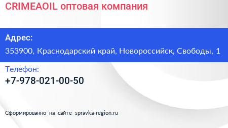CRIMEAOIL, оптовая компания по адресу 353900, Краснодарский край, Новороссийск, Свободы, 1 в дальнейшем Организация, размещена в следующих категориях: