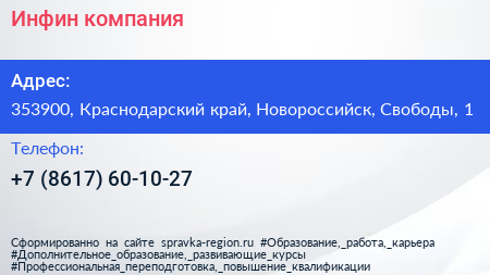 Инфин, компания по адресу 353900, Краснодарский край, Новороссийск, Свободы, 1 в дальнейшем Организация, размещена в следующих категориях: