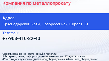 Компания по металлопрокату по адресу Краснодарский край, Новороссийск, Кирова, 3а в дальнейшем Организация, размещена в следующих категориях: