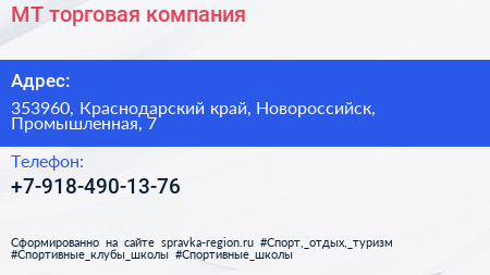 МТ, торговая компания по адресу 353960, Краснодарский край, Новороссийск, Промышленная, 7 в дальнейшем Организация, размещена в следующих категориях: