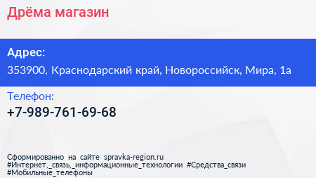 Дрёма, магазин по адресу 353900, Краснодарский край, Новороссийск, Мира, 1а в дальнейшем Организация, размещена в следующих категориях:
