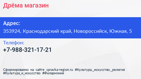 Дрёма, магазин по адресу 353924, Краснодарский край, Новороссийск, Южная, 5 в дальнейшем Организация, размещена в следующих категориях: