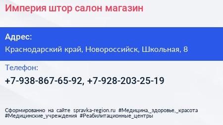 Империя штор, салон-магазин по адресу Краснодарский край, Новороссийск, Школьная, 8 в дальнейшем Организация, размещена в следующих категориях: