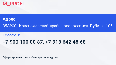 M_PROFI по адресу 353900, Краснодарский край, Новороссийск, Рубина, 105 в дальнейшем Организация, размещена в следующих категориях: