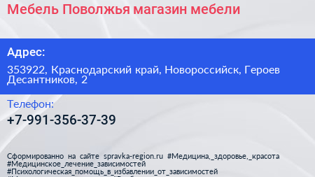 Мебель Поволжья, магазин мебели по адресу 353922, Краснодарский край, Новороссийск, Героев Десантников, 2 в дальнейшем Организация, размещена в следующих категориях: