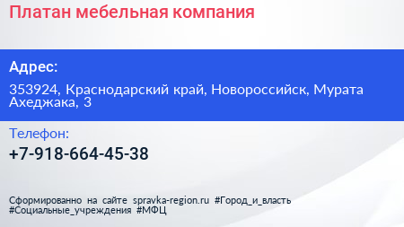 Платан, мебельная компания по адресу 353924, Краснодарский край, Новороссийск, Мурата Ахеджака, 3 в дальнейшем Организация, размещена в следующих категориях: