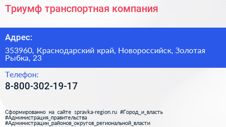 Триумф, транспортная компания по адресу 353960, Краснодарский край, Новороссийск, Золотая Рыбка, 23 в дальнейшем Организация, размещена в следующих категориях: