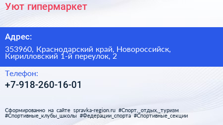 Уют, гипермаркет по адресу 353960, Краснодарский край, Новороссийск, Кирилловский 1-й переулок, 2 в дальнейшем Организация, размещена в следующих категориях: