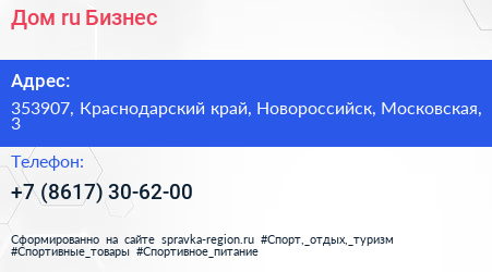 Дом.ru Бизнес по адресу 353907, Краснодарский край, Новороссийск, Московская, 3 в дальнейшем Организация, размещена в следующих категориях: