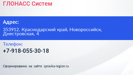 ГЛОНАСС Систем по адресу 353912, Краснодарский край, Новороссийск, Днестровская, 4 в дальнейшем Организация, размещена в следующих категориях: