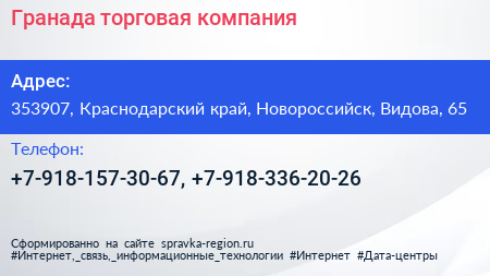 Гранада, торговая компания по адресу 353907, Краснодарский край, Новороссийск, Видова, 65 в дальнейшем Организация, размещена в следующих категориях: