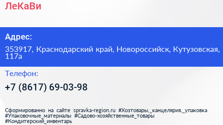 ЛеКаВи по адресу 353917, Краснодарский край, Новороссийск, Кутузовская, 117а в дальнейшем Организация, размещена в следующих категориях: