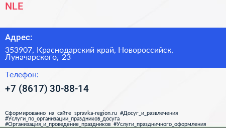 NLE по адресу 353907, Краснодарский край, Новороссийск, Луначарского, 23 в дальнейшем Организация, размещена в следующих категориях: