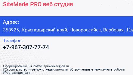 SiteMade.PRO, веб-студия по адресу 353925, Краснодарский край, Новороссийск, Вербовая, 11а в дальнейшем Организация, размещена в следующих категориях: