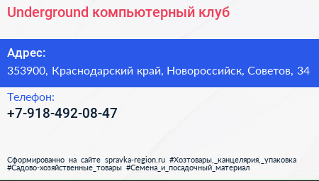 Underground, компьютерный клуб по адресу 353900, Краснодарский край, Новороссийск, Советов, 34 в дальнейшем Организация, размещена в следующих категориях: