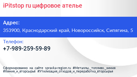 iPitstop.ru, цифровое ателье по адресу 353900, Краснодарский край, Новороссийск, Сипягина, 5 в дальнейшем Организация, размещена в следующих категориях: