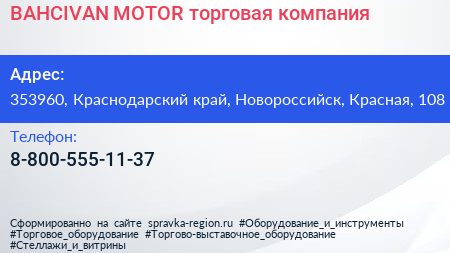 BAHCIVAN MOTOR, торговая компания по адресу 353960, Краснодарский край, Новороссийск, Красная, 108 в дальнейшем Организация, размещена в следующих категориях: