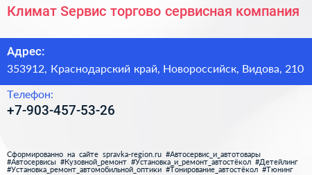Климат Sервис, торгово-сервисная компания по адресу 353912, Краснодарский край, Новороссийск, Видова, 210 в дальнейшем Организация, размещена в следующих категориях: