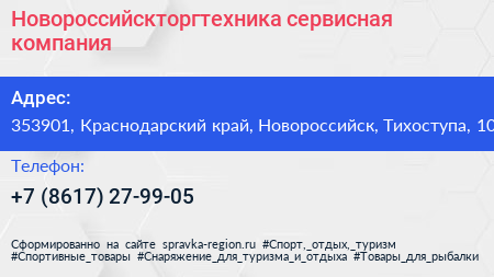 Новороссийскторгтехника, сервисная компания по адресу 353901, Краснодарский край, Новороссийск, Тихоступа, 10 в дальнейшем Организация, размещена в следующих категориях: