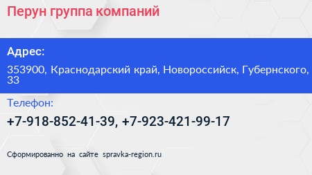 Перун, группа компаний по адресу 353900, Краснодарский край, Новороссийск, Губернского, 33 в дальнейшем Организация, размещена в следующих категориях: