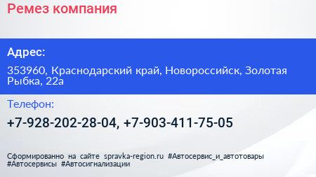 Ремез, компания по адресу 353960, Краснодарский край, Новороссийск, Золотая Рыбка, 22а в дальнейшем Организация, размещена в следующих категориях: