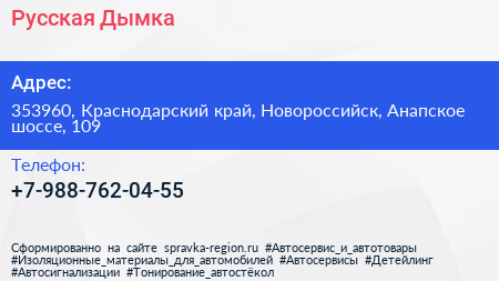 Русская Дымка по адресу 353960, Краснодарский край, Новороссийск, Анапское шоссе, 109 в дальнейшем Организация, размещена в следующих категориях: