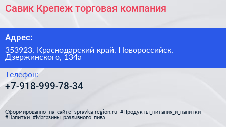 Савик-Крепеж, торговая компания по адресу 353923, Краснодарский край, Новороссийск, Дзержинского, 134а в дальнейшем Организация, размещена в следующих категориях: