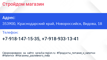 Стройдом, магазин по адресу 353900, Краснодарский край, Новороссийск, Видова, 18 в дальнейшем Организация, размещена в следующих категориях: