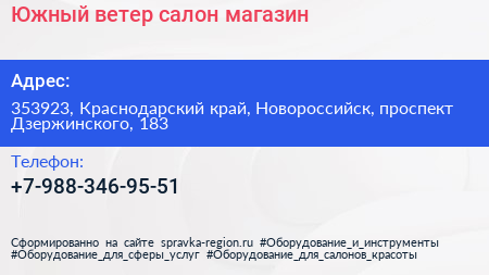 Южный ветер, салон-магазин по адресу 353923, Краснодарский край, Новороссийск, проспект Дзержинского, 183 в дальнейшем Организация, размещена в следующих категориях: