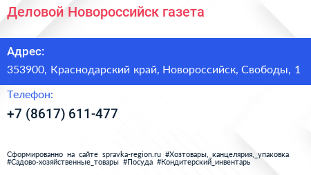 Деловой Новороссийск, газета по адресу 353900, Краснодарский край, Новороссийск, Свободы, 1 в дальнейшем Организация, размещена в следующих категориях: