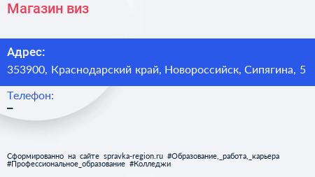 Магазин виз по адресу 353900, Краснодарский край, Новороссийск, Сипягина, 5 в дальнейшем Организация, размещена в следующих категориях: