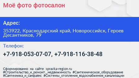 Моё фото, фотосалон по адресу 353922, Краснодарский край, Новороссийск, Героев Десантников, 79 в дальнейшем Организация, размещена в следующих категориях: