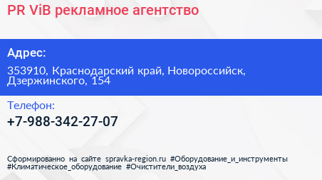 PR ViB, рекламное агентство по адресу 353910, Краснодарский край, Новороссийск, Дзержинского, 154 в дальнейшем Организация, размещена в следующих категориях: