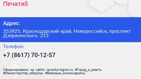 Печати5 по адресу 353925, Краснодарский край, Новороссийск, проспект Дзержинского, 213 в дальнейшем Организация, размещена в следующих категориях: