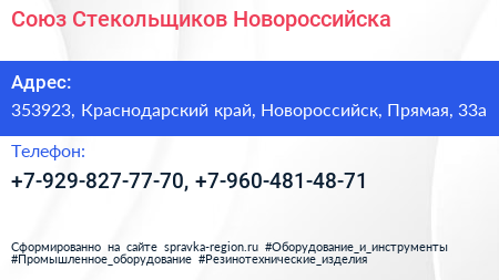 Союз Стекольщиков Новороссийска по адресу 353923, Краснодарский край, Новороссийск, Прямая, 33а в дальнейшем Организация, размещена в следующих категориях: