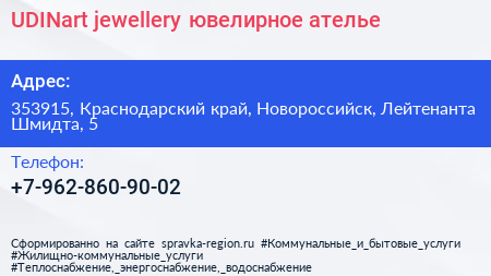 UDINart jewellery, ювелирное ателье по адресу 353915, Краснодарский край, Новороссийск, Лейтенанта Шмидта, 5 в дальнейшем Организация, размещена в следующих категориях: