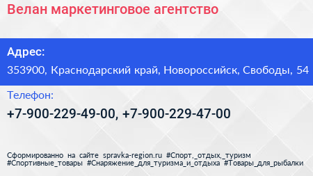 Велан, маркетинговое агентство по адресу 353900, Краснодарский край, Новороссийск, Свободы, 54 в дальнейшем Организация, размещена в следующих категориях: