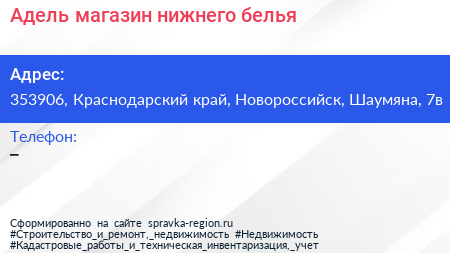 Адель, магазин нижнего белья по адресу 353906, Краснодарский край, Новороссийск, Шаумяна, 7в в дальнейшем Организация, размещена в следующих категориях: