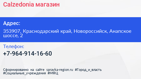 Calzedonia, магазин по адресу 353907, Краснодарский край, Новороссийск, Анапское шоссе, 2 в дальнейшем Организация, размещена в следующих категориях: