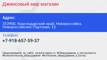 Джинсовый мир, магазин по адресу 353900, Краснодарский край, Новороссийск, Новороссийских Партизан, 12 в дальнейшем Организация, размещена в следующих категориях: