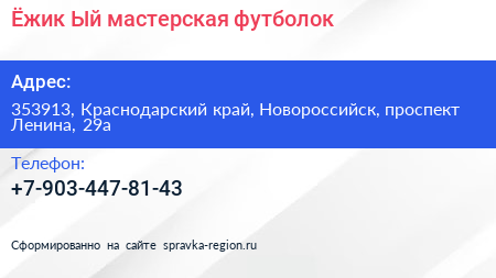 Ёжик Ый, мастерская футболок по адресу 353913, Краснодарский край, Новороссийск, проспект Ленина, 29а в дальнейшем Организация, размещена в следующих категориях: