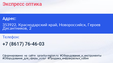 Экспресс-оптика по адресу 353922, Краснодарский край, Новороссийск, Героев Десантников, 2 в дальнейшем Организация, размещена в следующих категориях: